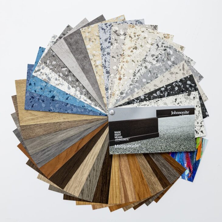 All Johnsonite products are made in America. The Masquerade collection is FloorScore® Certified, ortho-phthalate-free and part of Tarkett’s ReStart® take-back and recycling program.
