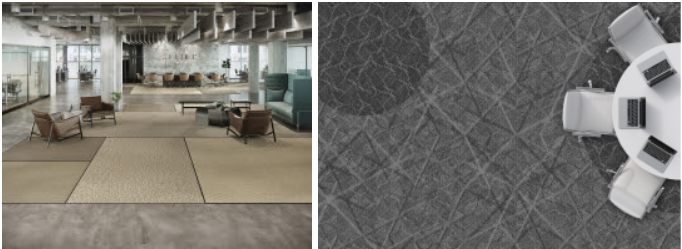 Tarkett has a history of designing and producing award-winning and innovative flooring solutions. Tatami System is a new category of floorcovering that upends conventional broadloom and gives designers and end users the autonomy to continually adjust spaces to align with their ever-changing needs. Designed by Jhane Barnes, FlightPath & AirSpace were first inspired by the lines and angles of intersecting flight paths on an air traffic map. This aesthetic inspiration quickly evolved into a beautifully functional flooring design—one that could simplify installation in contemporary architectural designs, where right angles and straight lines give way to open, multi-use spaces and curved walls.
