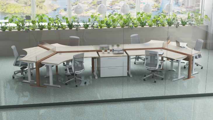 Built on Tayco’s proven Cosmo structural platform, Bridgeway leverages shared components to reduce material waste and extend product life. Recyclable PET screen options, from Tayco’s Echo line, further support sustainability goals, aligning with the growing demand for responsible, long-term workplace solutions.