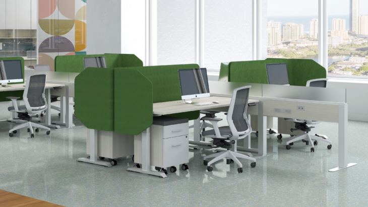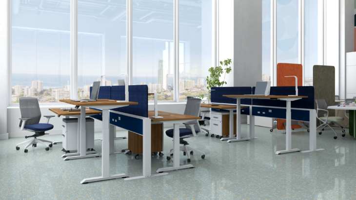 Bridgeway offers multiple fencing heights and optional privacy screens, enabling designers to balance openness with focus and acoustic comfort. With 22 metal finish options, the system can be tailored to complement a wide range of design palettes while maintaining visual consistency across open environments.