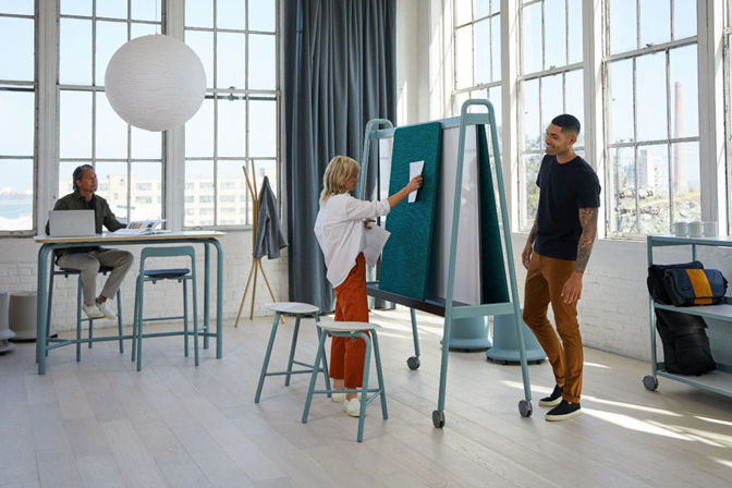 From the multipurpose stool and high table to the mobile soft screen and adjustable side table, simplicity, flexibility, and mobility are at the forefront of the design, offering furniture that’s as agile as it is intuitive. An easel that is writeable, tackable, and stackable, the Routes Work Board allows you to choose your own pathway, adapting to multiple ways of working that promote user choice. The Adjustable Side Table builds surface space for laptops, books, or coffee cups.