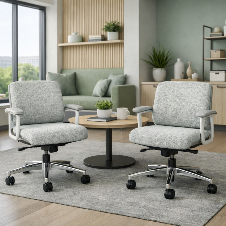 The result of this advanced production process is a supple, soft-touch surface with exceptional technical performance, including 500,000 double rubs, 24-week hydrolysis resistance, and permanent cleanability that does not diminish over time. NetZERO BIO is built with Mitchell’s new Hydro-Sil™ silicone-based performance finish engineered for superior stain resistance, ink repellency, and long-term durability in commercial environments.
