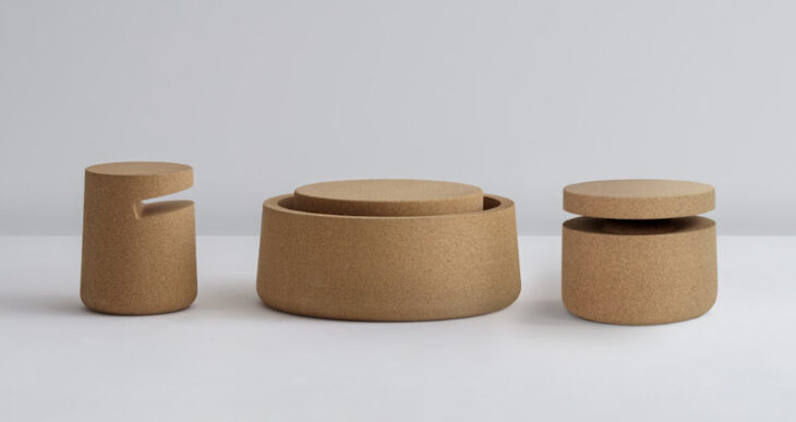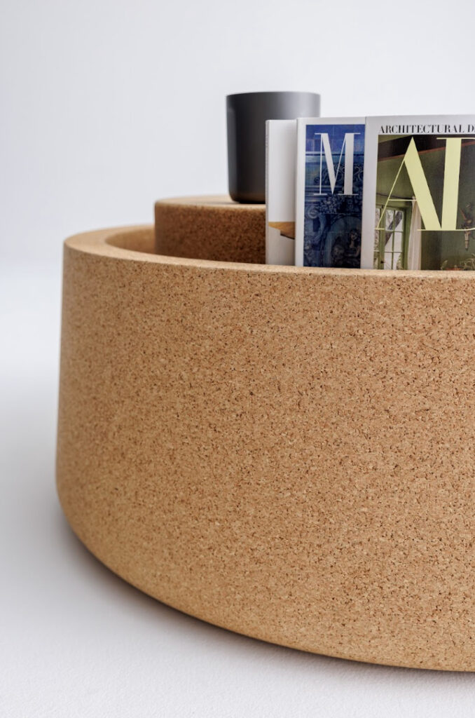 Like Bob, Studio TK has launched these three stooges in partnership with Modus in South Somerset, UK. Designed by Michael Sodeau, the occasional tables are crafted from 100% recycled cork materials left over from the wine bottle cork manufacturing process. Cork is naturally water-repellent, easy to clean, and offers sound-insulating properties, creating a memorable and cozy atmosphere. The tables can either be mechanically recycled into new products or biodegraded at the end of life.