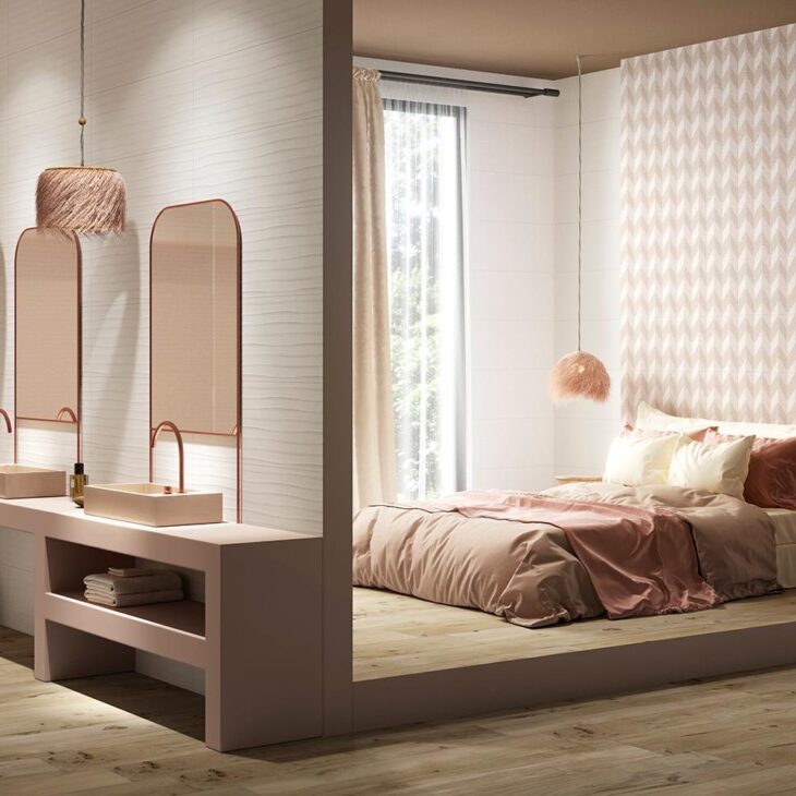 Like any facet of ceramic design, in-vogue colorways emerge and develop based on input from multiple industries. Be it fashion, art, cosmetics or food and beverage, there seems to be a unified understanding on color-theory and prevailing hues. With many institutions offering their own take on leading “it” colors, it’s clear that neutrals continue to reign with a slight spectrum shift towards warm flesh-tones. Ceramic manufacturers follow suit with new lines that utilize a range of nudes, symbolizing a deeper understanding of color psychology and its impact on mood and perception. By incorporating these hues into their products, Spanish tile makers are creating new ceramics that resonate with people on a visceral level, enhancing the overall sensory experience of a space.