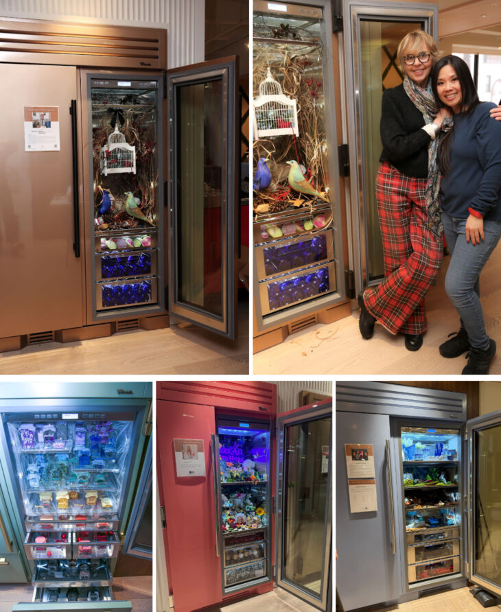 On Friday, January 31, the design community gathered at True Residential’s NYC showroom for the winners’ reception of its inaugural Fridgescaping Design Competition. Guests were invited to explore the stunning interior transformations of True’s colorful refrigeration units, enacted by six visionary designers and creatives, including Bonnie Steves (BJS) with Gigi Chen (Gigi Chen Art), Rose Ott (Rose Ott Design), Faten Baassiri (Studio 1820), and Maria Lomanto and Michelle Jacobson (DesignGLXY Group).