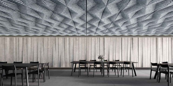 Cove is a striking ceiling tile from the award-winning ecoustic® Sculpt system based on simple geometry which encourages the eye to look towards the sky.