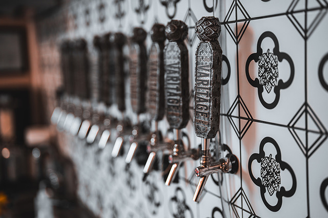 Two New Jersey based businesses collaborate to create a unique custom tile for Bloomfield, NJ’s first brewery, Varitage Brew Works. “I wanted to tie in my European heritage with both the branding and the décor inside the brewery. Inspired by a traditional Portuguese Azulejos tile design, we contacted Imagine Tile to bring our vision to life. Imagine Tile created a custom 8 x 8 black and white wall tile featuring our signature Hopdrangea design, which is a focal point of the interior providing a custom tiled backdrop for our taps and front of the bar. The flower petals found within our branding are Hydrangea petals, which blanket the landscape of the Azores from where my family immigrated. It was only fitting to include this distinctive design concept within our branding to pay homage to a piece of heritage that defines us,” stated Mark Costa, Founder/CEO/Head Brewer Varitage Brew Works.