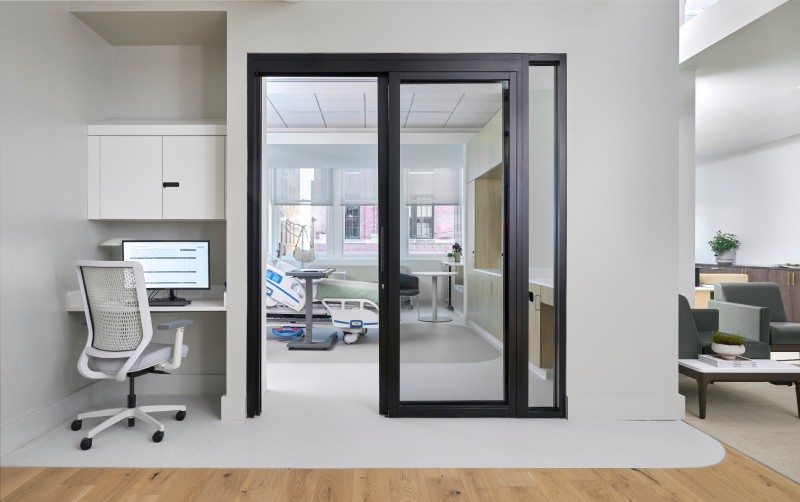 Customers of Carolina will split off to the left when they arrive and will find a modern, new healthcare showroom, complete with a hospital room fully fitted out with its furniture. Workplace customers will split off to the right, where they will find the full line of OFS furniture and its ROOM pods.