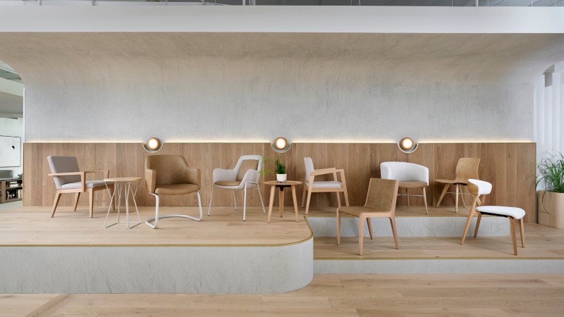The showroom also allows OFS to better highlight all its brands. The showroom is not only home to OFS, it also has ample space for its Carolina healthcare and ROOM work pod brands. Effectively, the showroom is split into two halves.
