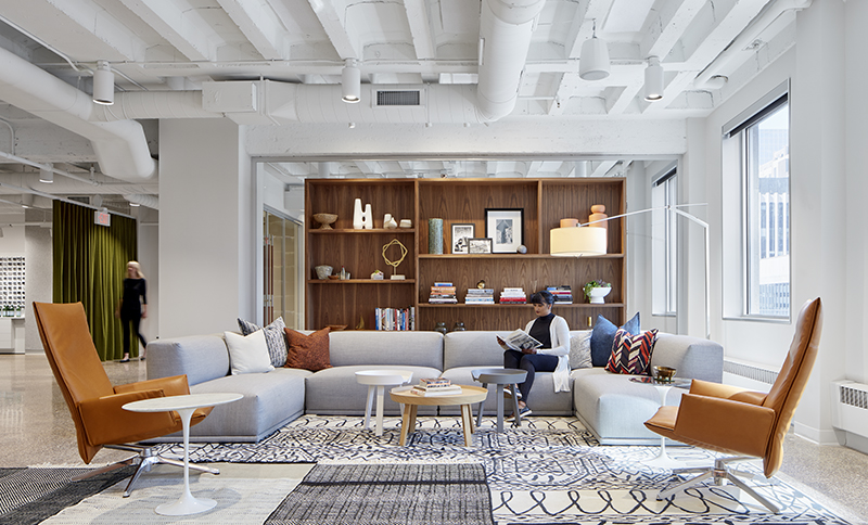 Said Mr. Haines, “Betsy and her team did some research ahead of time, and then we sent out surveys to interior designers, to project managers, to brokers and owners reps asking, ‘what do you want to see in a furniture showroom?’ because this was our chance to do it right.”